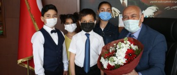 23 Nisan Ulusal Egemenlik ve Çocuk Bayramı nedeniyle Söke’nin sembolik Başkanı Hasan Can Tosun, Belediye Başkanlığı makamına oturdu.