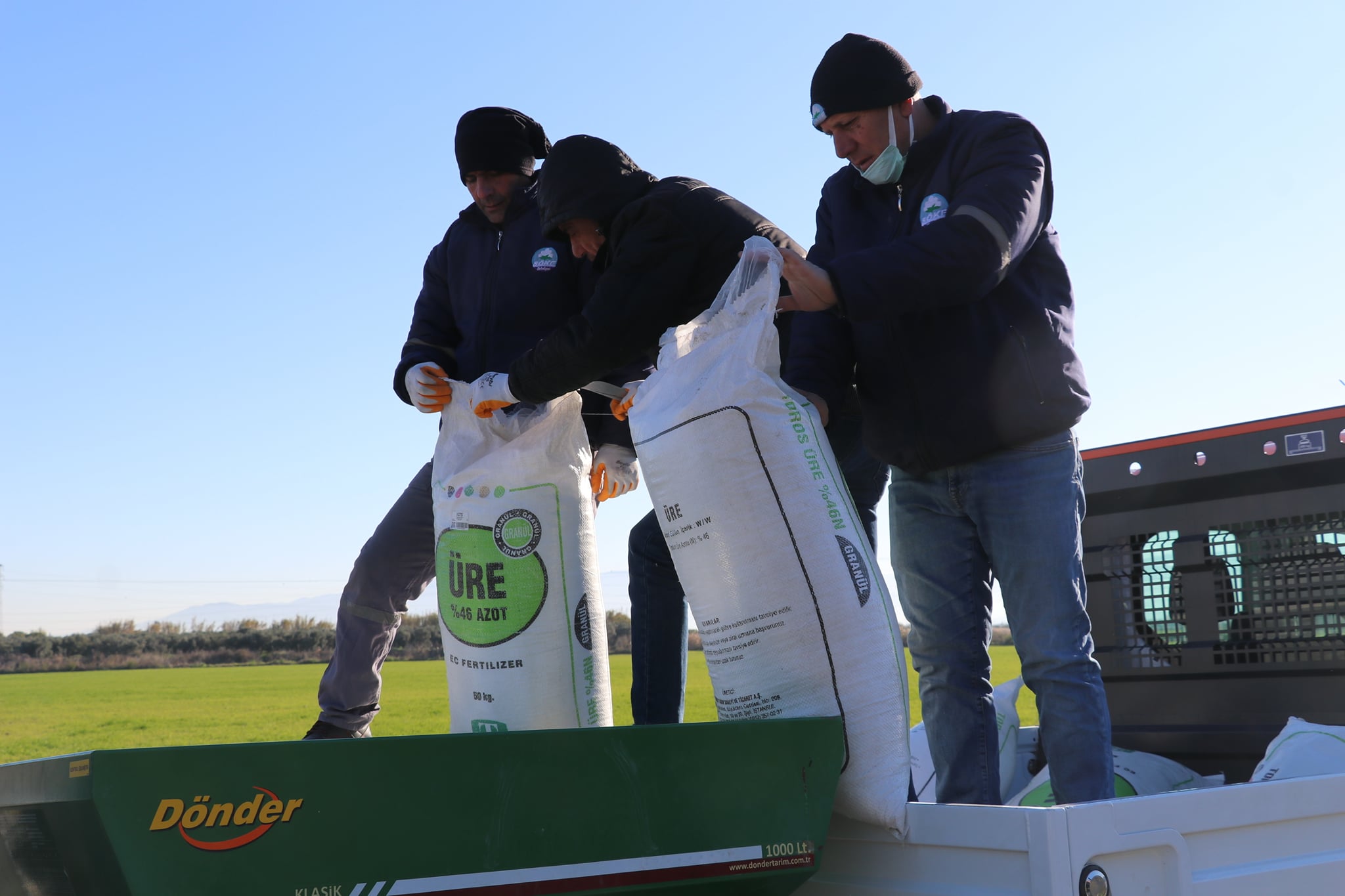 Söke Belediyesi’nin arazilerinde yeni sezon buğday üretiminde çalışmalar titizlikle sürdürülüyor. Tarımsal Kalkınmayı desteklemenin yanı sıra sosyal belediyecilik örneği olarak da öne çıkan proje kapsamında, 70 dönümlük arazide tohumlar Kasım ayı içinde toprakla buluşmuştu. Yemyeşil bir görünüme kavuşan buğday tarlasında Söke Belediyesi ekiplerince gübreleme çalışması da yapıldı.