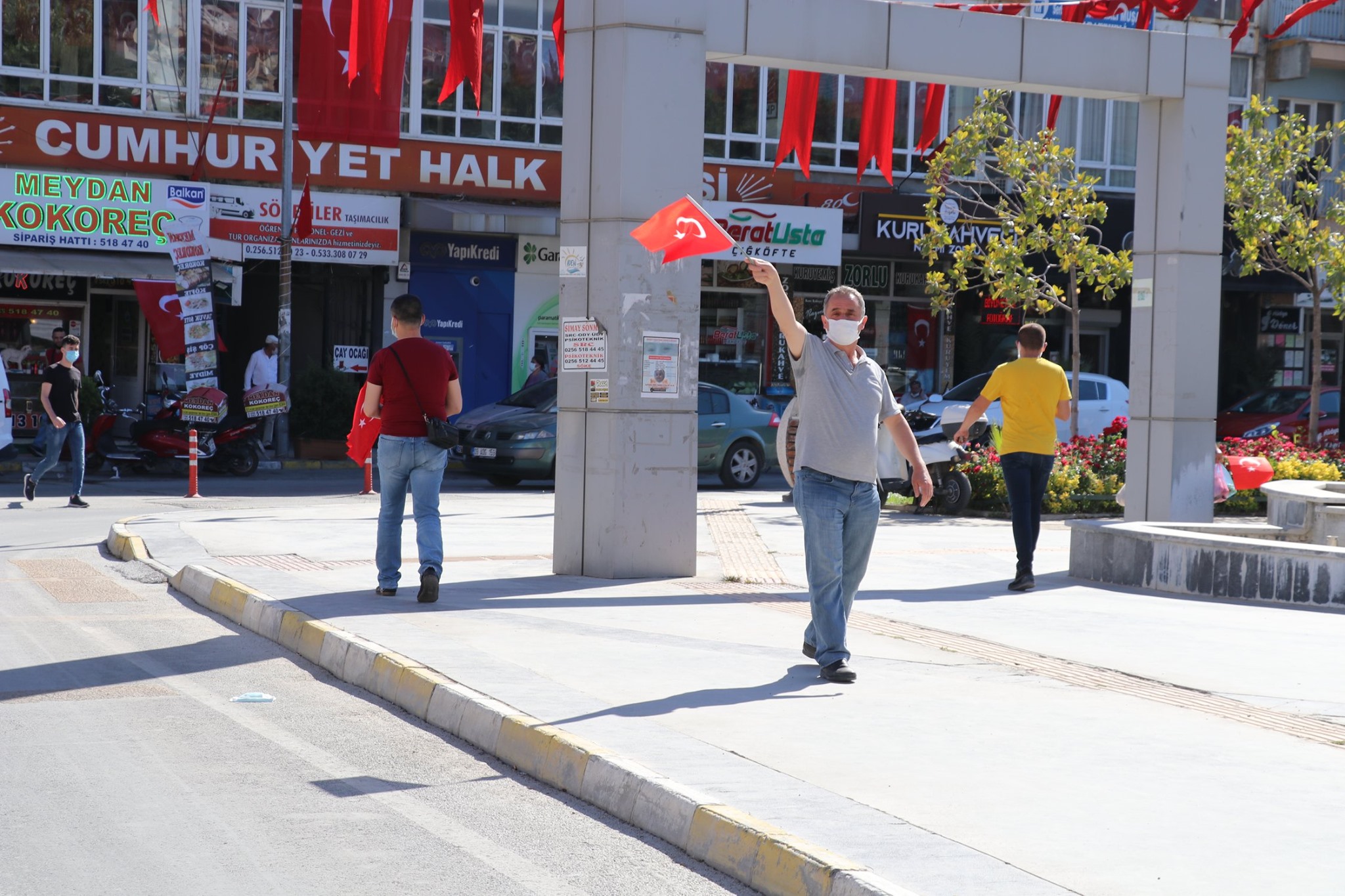 Söke Belediyesi ekiplerince 2 Bin adet Türk Bayrağı dağıtımı yapılırken; ses sistemi ile marşlar ve yapılan anonslar coşkuya coşku kattı.