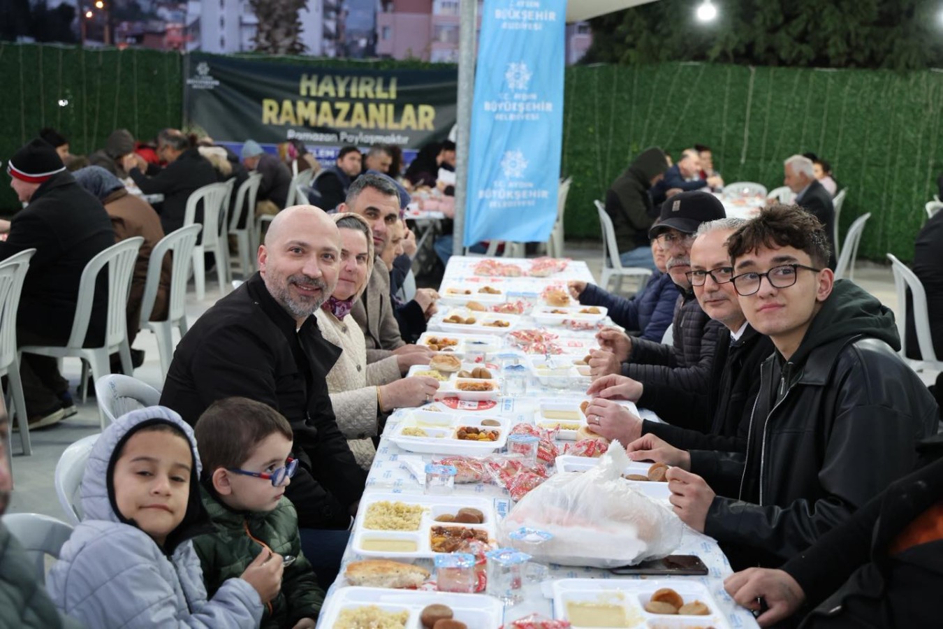 Ramazan ayının ruhunu paylaşarak yaşadığımız bu akşama Aydın Büyükşehir Belediyesi İklim Değişikliği ve Sıfır Atık Daire Başkanı Barış Tarım ve Belediye Başkan Yardımcımız Necmettin Aka’da katılarak Başkanımızla birlikte hemşehrilerimize yemek dağıtımında bulundu.