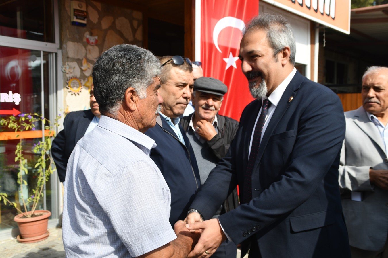 Konuşmaların ardından İlçe Kaymakamı Ümit Hüseyin Güney ve Belediye Başkan Yardımcısı Veli Devrim Yerli, Muhtarlar Derneği başkanı Ali Çıtak'a tüm muhtarlar adına çiçek takdim ettiler.