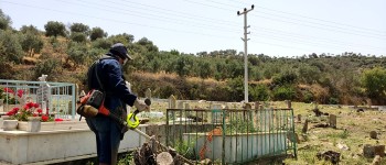 Yaklaşan Ramazan Bayramı öncesinde vatandaşların mezar ziyaretlerini daha rahat ve sağlıklı bir şekilde yapmaları amacıyla gerçekleştirilen çalışmalar kapsamında tüm mezarlıklarda yabani ot temizliği başta olmak üzere çalışma yapılıyor.