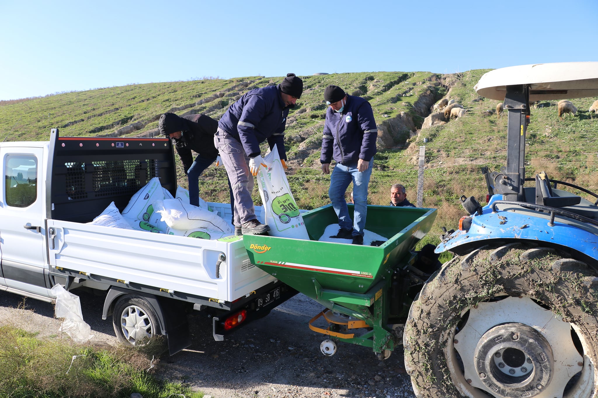 Söke Belediyesi’nin arazilerinde yeni sezon buğday üretiminde çalışmalar titizlikle sürdürülüyor. Tarımsal Kalkınmayı desteklemenin yanı sıra sosyal belediyecilik örneği olarak da öne çıkan proje kapsamında, 70 dönümlük arazide tohumlar Kasım ayı içinde toprakla buluşmuştu. Yemyeşil bir görünüme kavuşan buğday tarlasında Söke Belediyesi ekiplerince gübreleme çalışması da yapıldı.